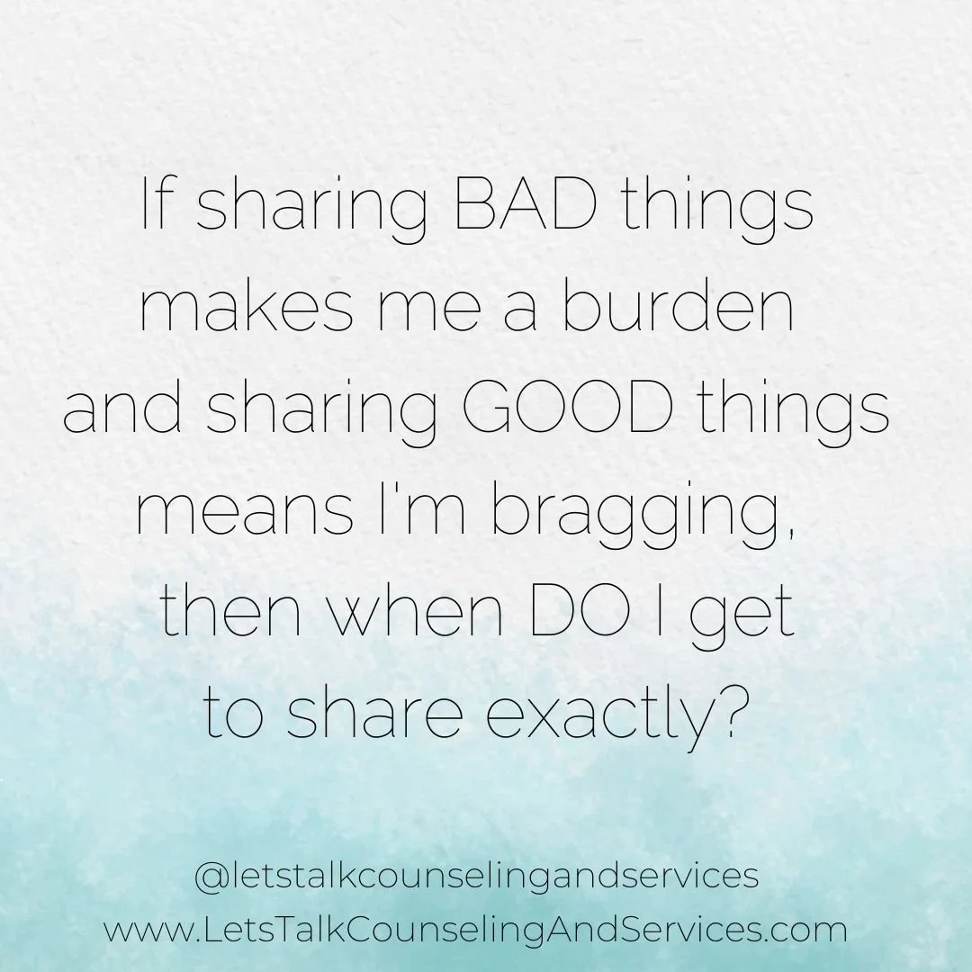 You don’t share with people in your life about how you’re really doing because you don’t want to be a burden. "Nobody wants to hear that. People have enough problems of their own.” Sound familiar? We hear it all the time.